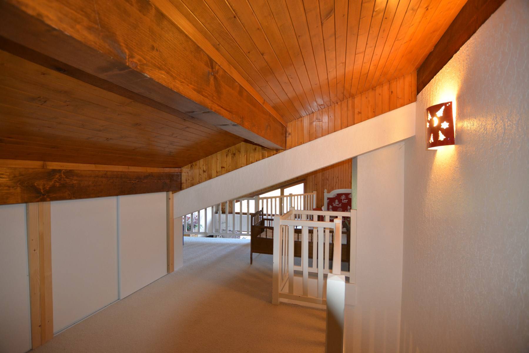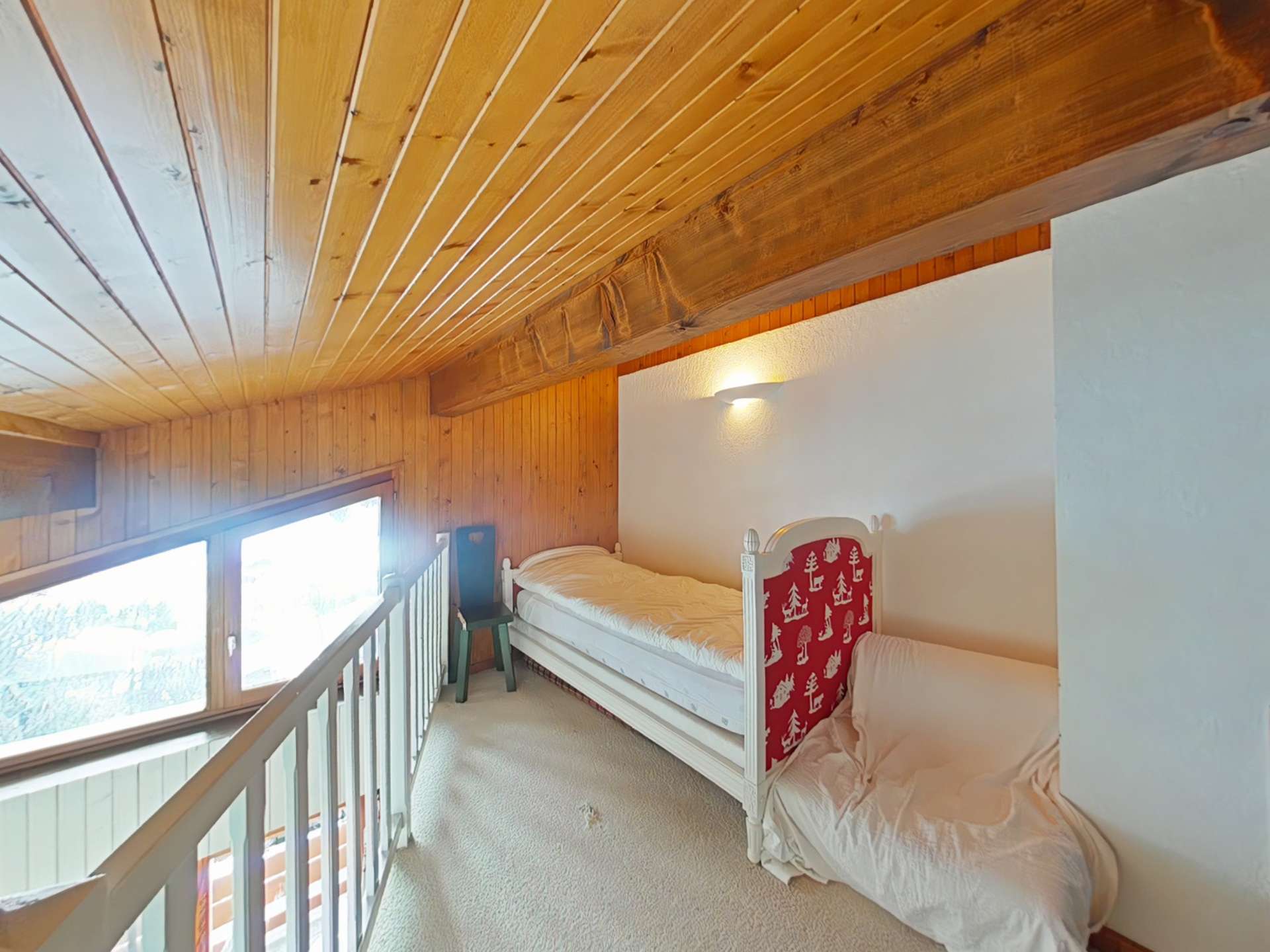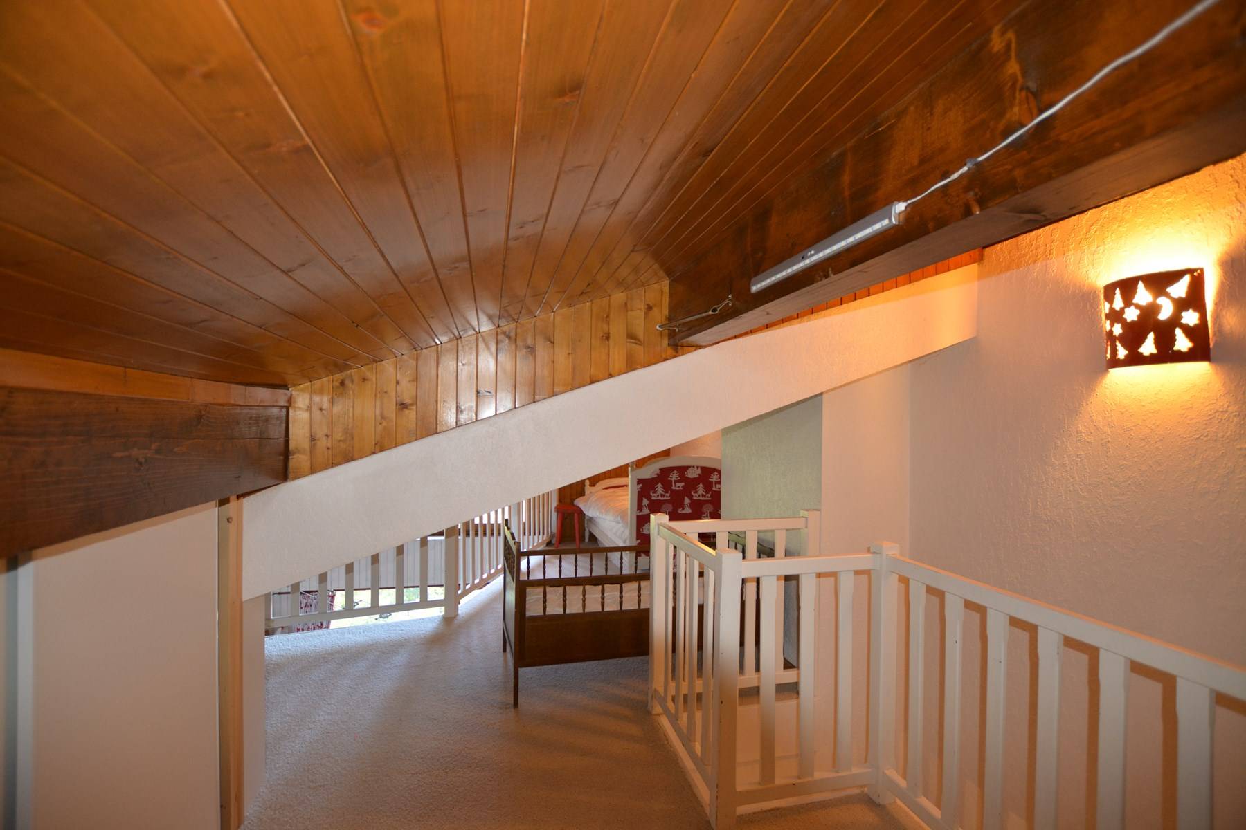 Cet appartement de vacances situé au 2ème étage, comprend un séjour avec télévision, un coin cuisine équipé avec lave-vaisselle, une chambre avec un lit double (2 lits en 90 rapprochés), une salle de bains, WC indépendant et, en partie duplex : une mezzanine avec un lit une personne, une chambre avec 2 lits une personne, une seconde chambre avec 2 lits une personne en 90 rapprochés, une salle d'eau.